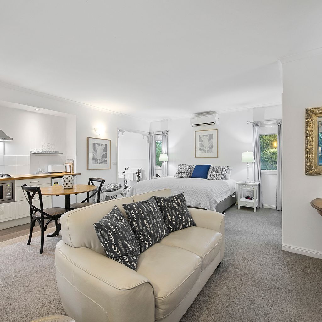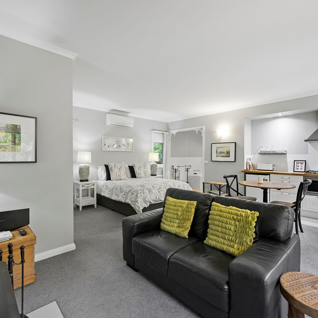 Amelina cottages have 2 two bedroom cottages and 2 studio cottages. The lovely cottages are nestled amongst the established gardens on over half an acre. Only a short 600 meter walk over the Steavenson river to the Marysville Village. The cottage has a fully equipped kitchen or kitchenette , beautiful designed country interiors, cosy wood fire to curl up to in the cooler months, or relax in the spa bath. The cottages are an excellent place to retreat from the city, wind down and enjoy the sounds of the bush in a practical and warming space. Set opposite the state forest, its the perfect place to explore all Marysville has to offer.