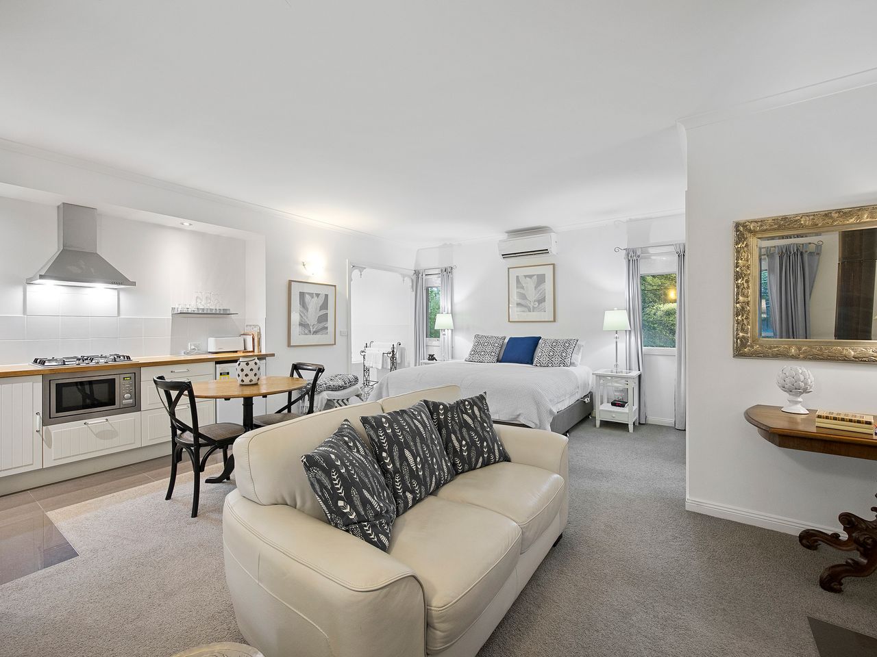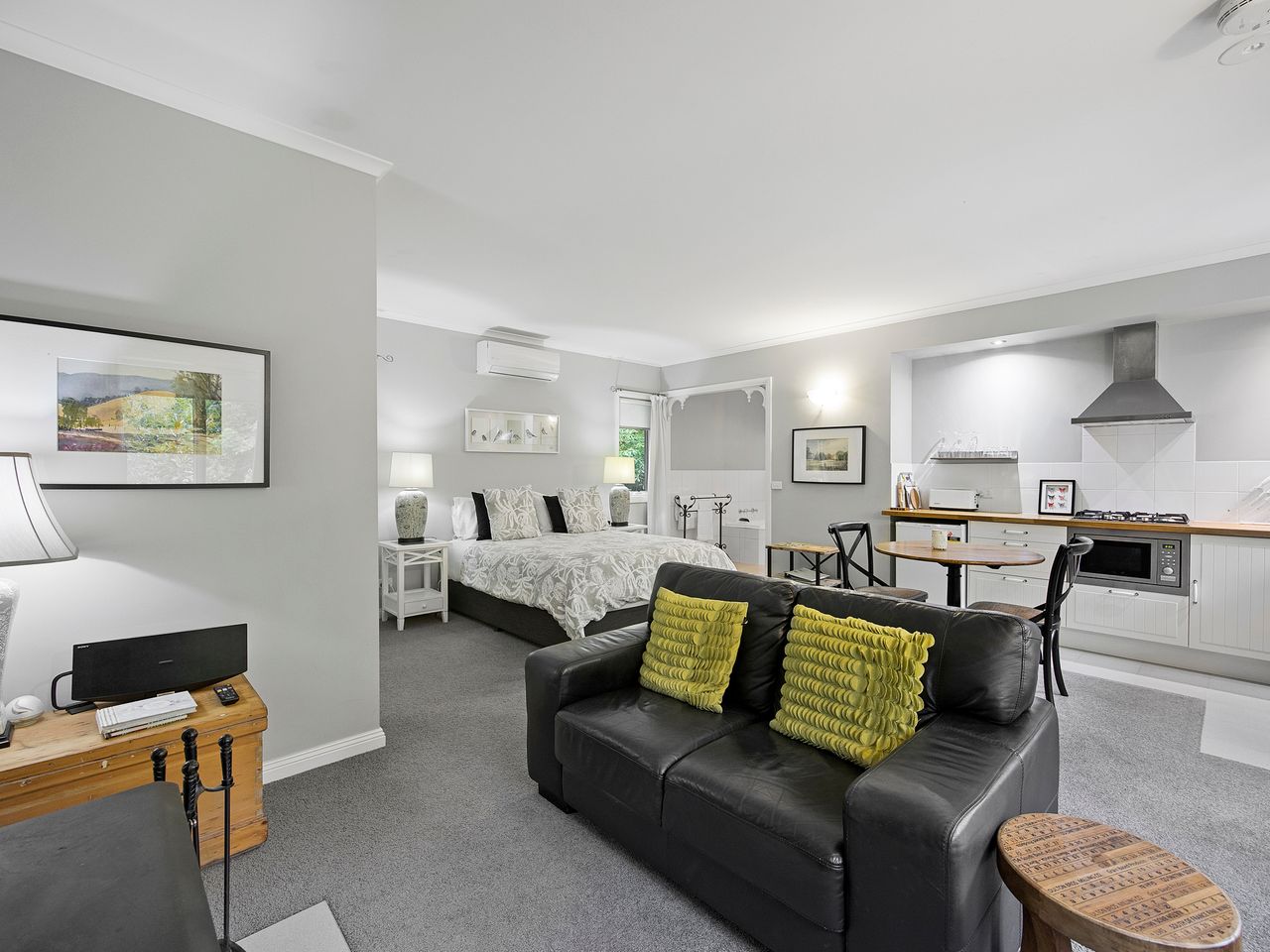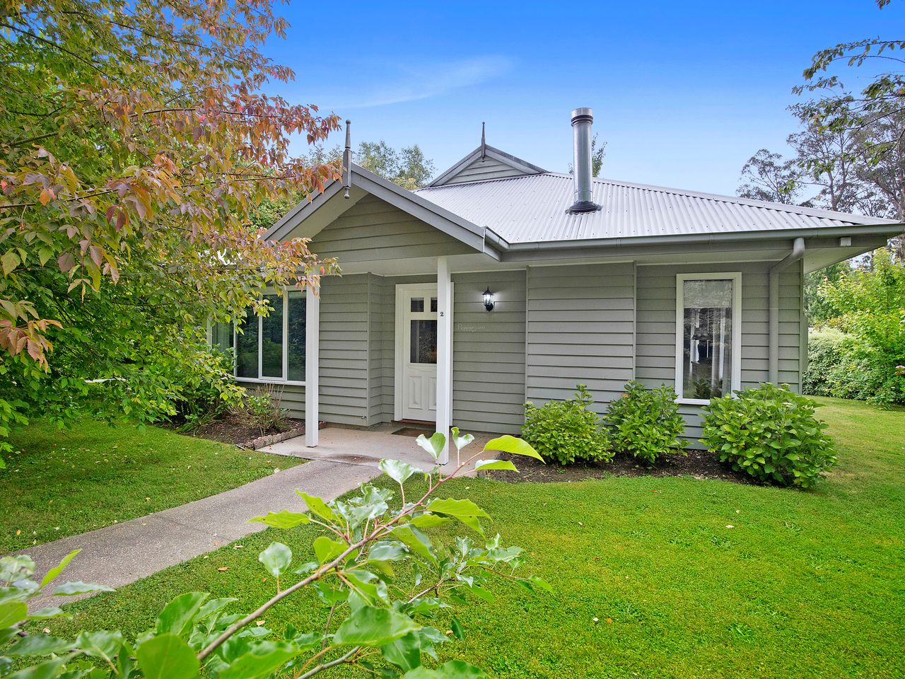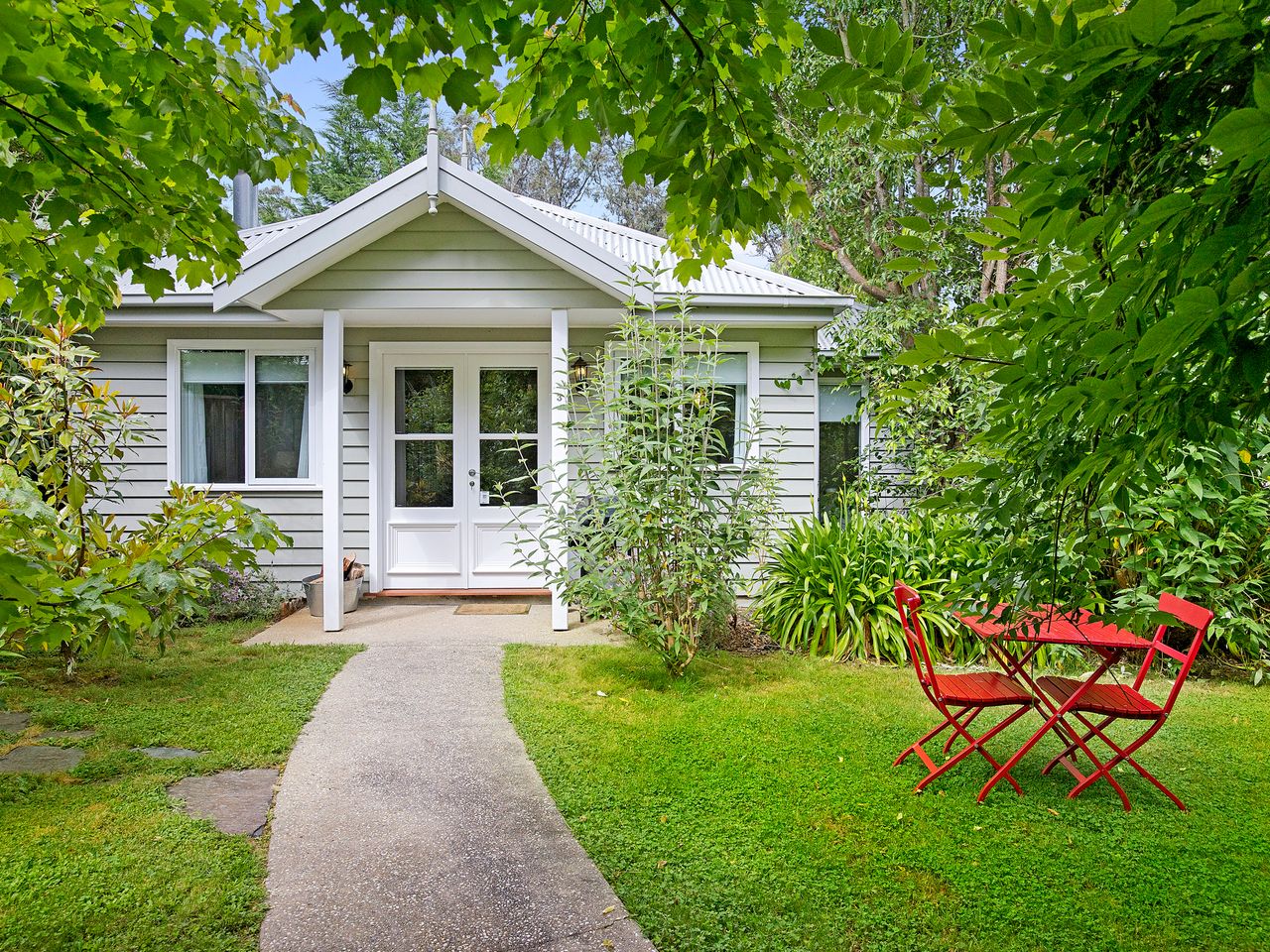 Amelina cottages have 2 two bedroom cottages and 2 studio cottages. The lovely cottages are nestled amongst the established gardens on over half an acre. Only a short 600 meter walk over the Steavenson river to the Marysville Village. The cottage has a fully equipped kitchen or kitchenette , beautiful designed country interiors, cosy wood fire to curl up to in the cooler months, or relax in the spa bath. The cottages are an excellent place to retreat from the city, wind down and enjoy the sounds of the bush in a practical and warming space. Set opposite the state forest, its the perfect place to explore all Marysville has to offer.