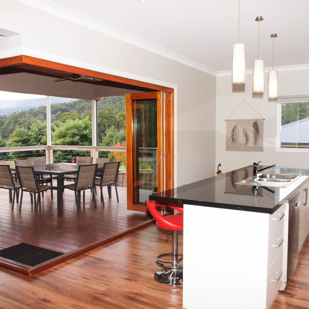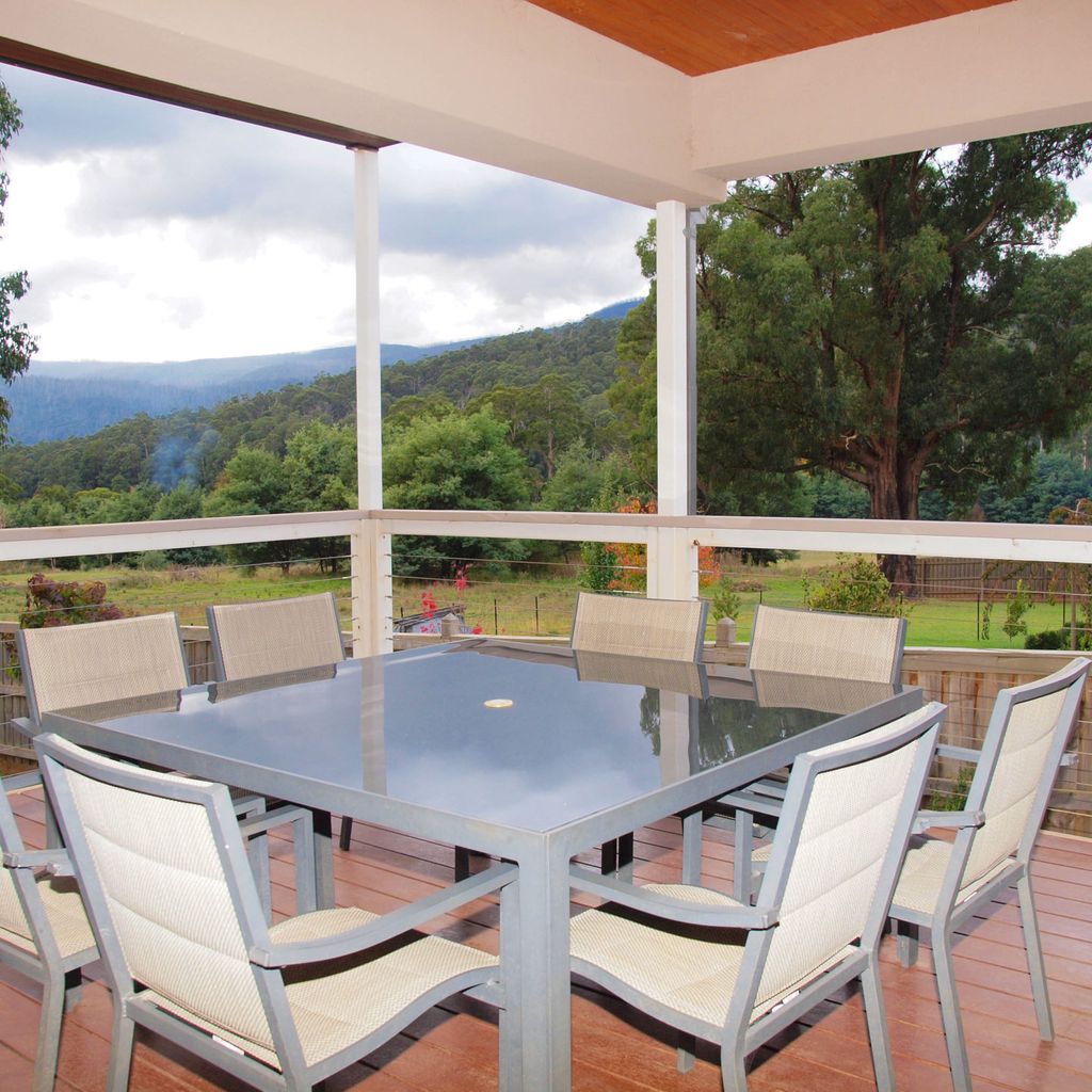 Step into this double-story, family-friendly home, perfectly located just a 5-minute walk from Marysville’s cafes, shops, and pub. Sleeping 8 guests across 3 bedrooms, the home features an open-plan living area with reclining leather sofas, Ultra HD TV, wood fire, and a fully equipped kitchen with granite island and walk-in pantry. Bi-fold doors open onto a deck with BBQ, outdoor dining, and stunning mountain views, while the upper level offers a master suite with private balcony and ensuite, plus a kids’ retreat with games, Wii, and DVD/Blu-ray.