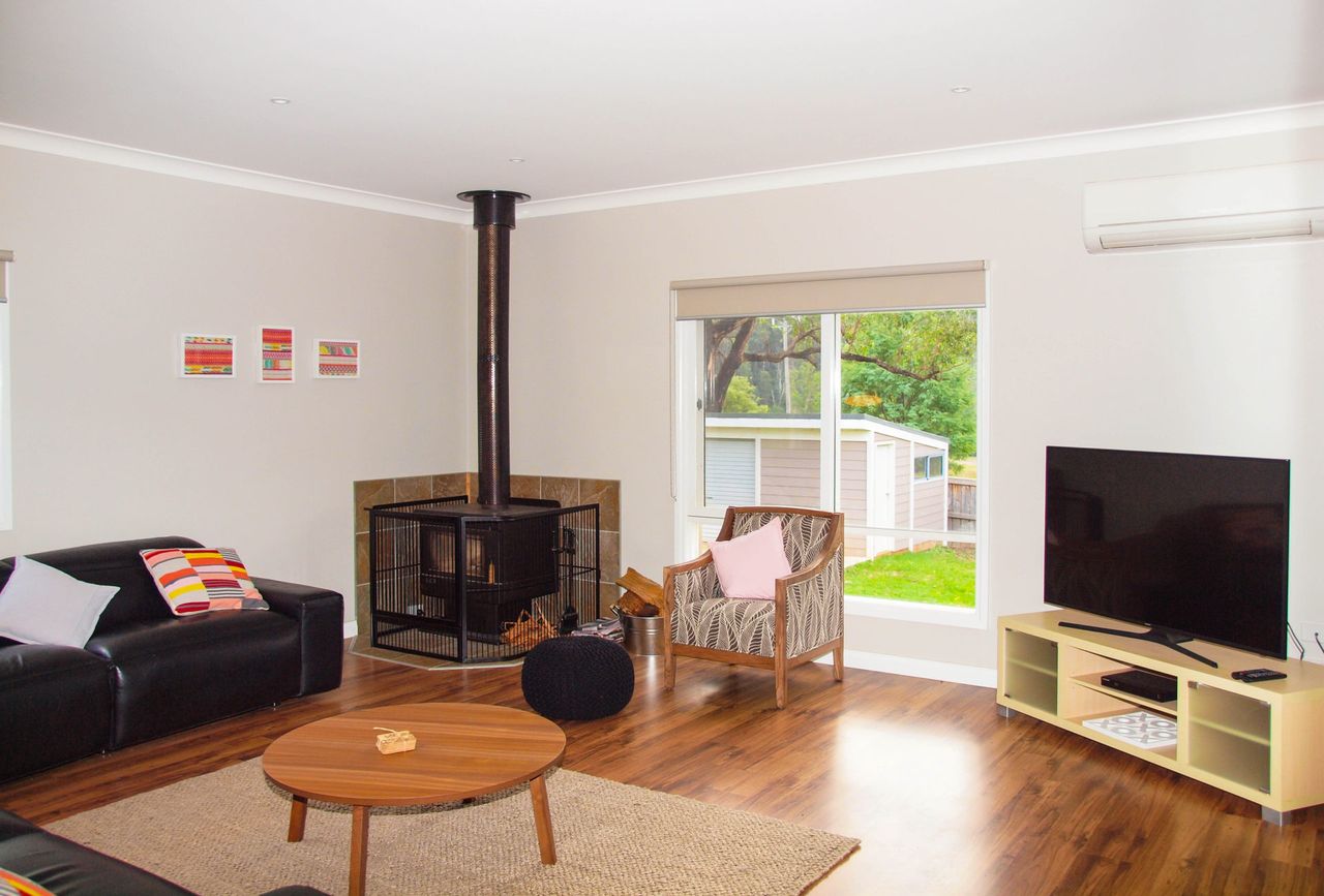 Step into this double-story, family-friendly home, perfectly located just a 5-minute walk from Marysville’s cafes, shops, and pub. Sleeping 8 guests across 3 bedrooms, the home features an open-plan living area with reclining leather sofas, Ultra HD TV, wood fire, and a fully equipped kitchen with granite island and walk-in pantry. Bi-fold doors open onto a deck with BBQ, outdoor dining, and stunning mountain views, while the upper level offers a master suite with private balcony and ensuite, plus a kids’ retreat with games, Wii, and DVD/Blu-ray.