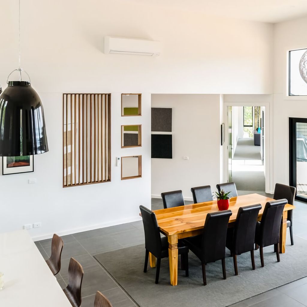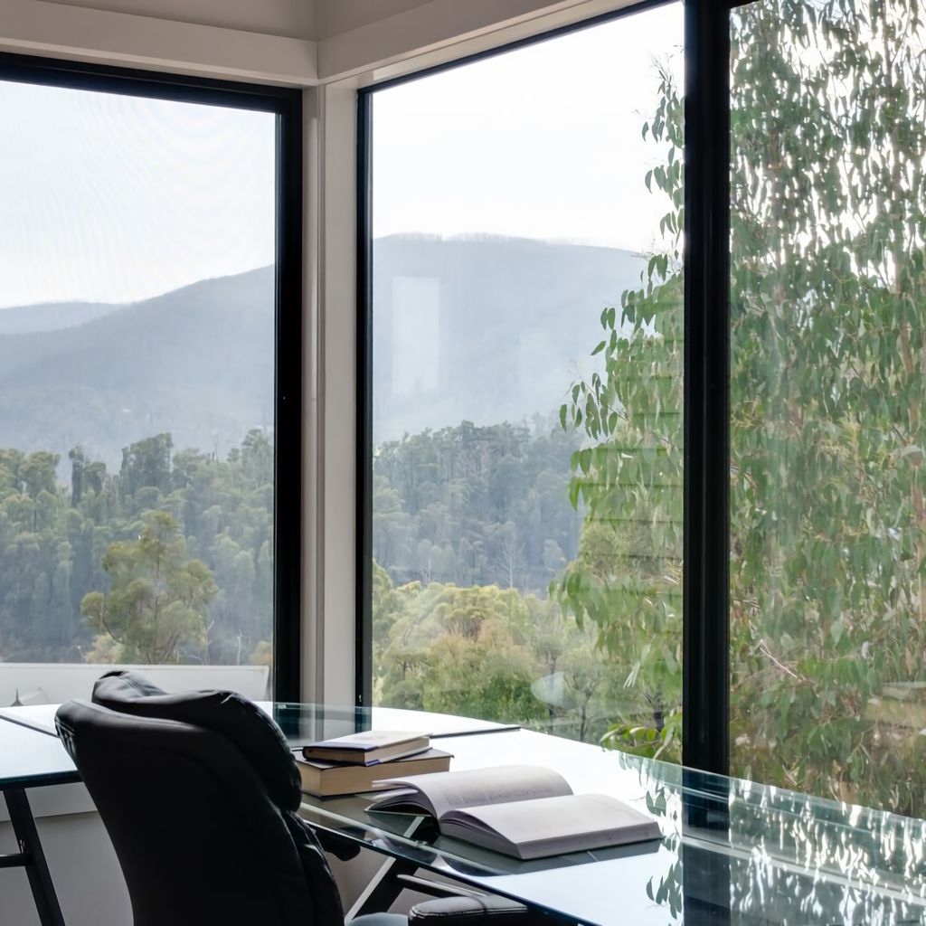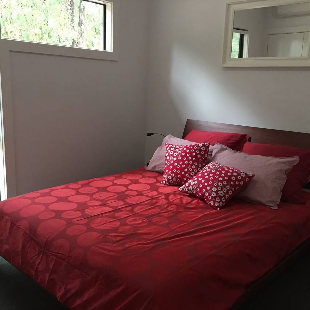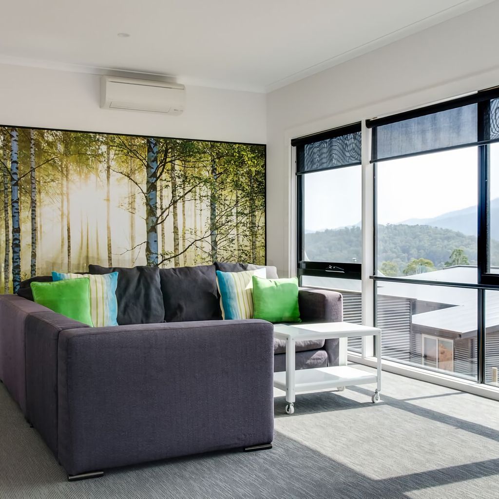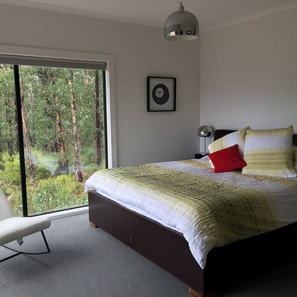 Designed for families and groups, this split-level home offers plenty of space, style, and stunning natural surroundings, just 1 km from the town centre. The open-plan living, kitchen, and dining area features soaring ceilings, double-height windows, a wood-fire heater, and plenty of room to relax. The fully equipped kitchen includes modern appliances and an island bench, with dining for eight. A second living area provides extra space for kids or teens with a TV, Foxtel, DVD/Blu-ray, and PlayStation. Split-system heating and cooling ensures year-round comfort.