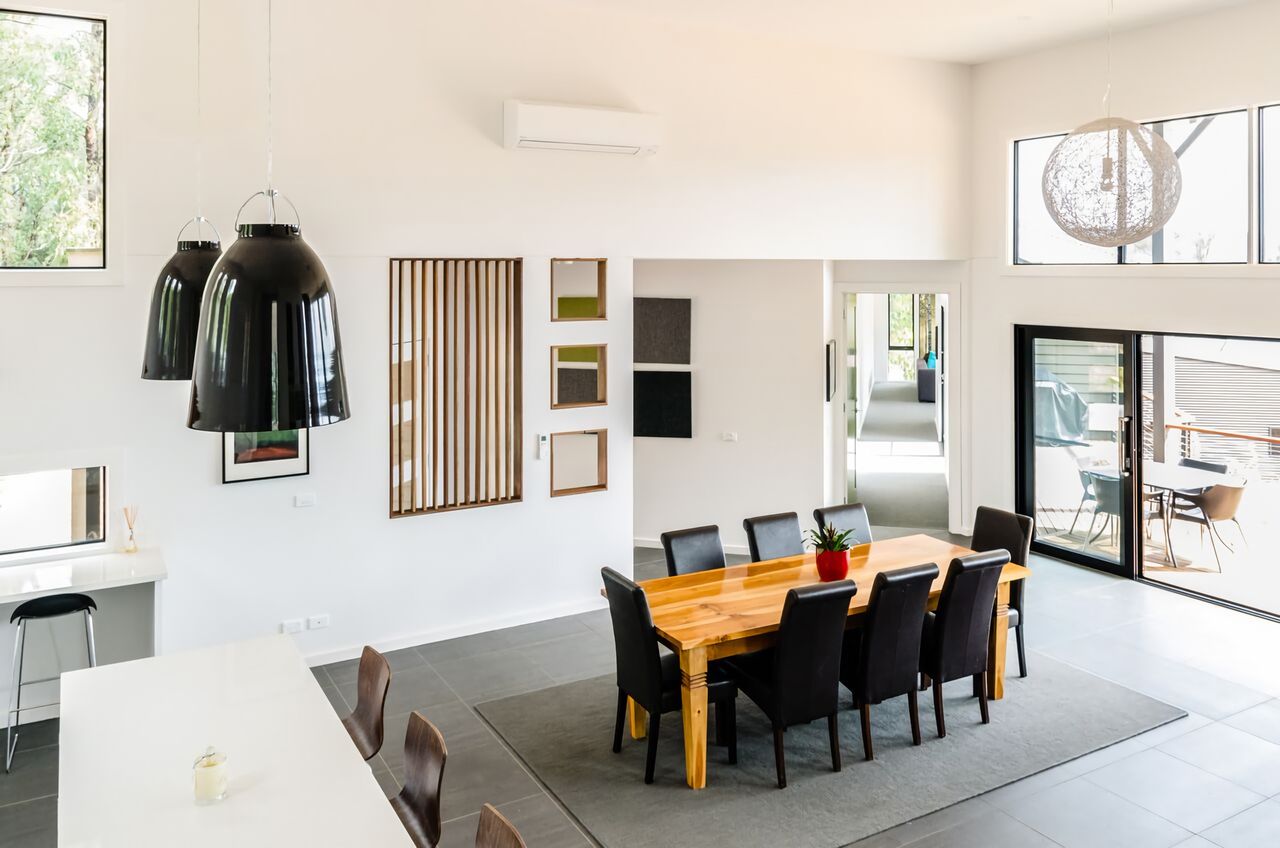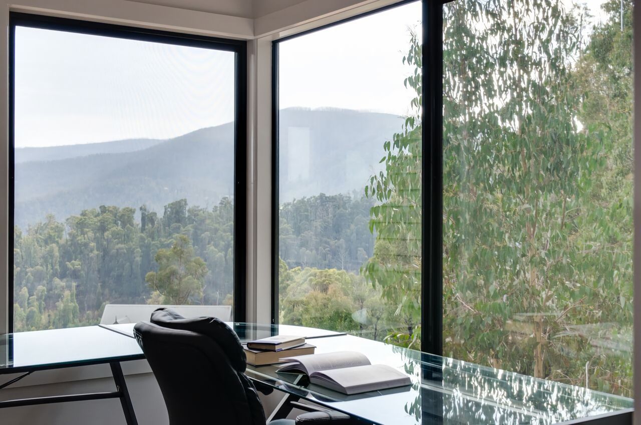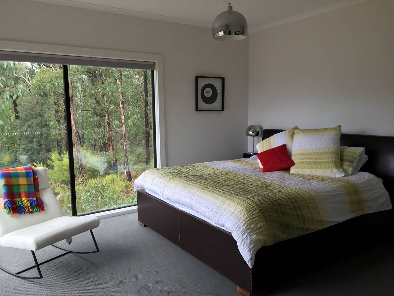 Designed for families and groups, this split-level home offers plenty of space, style, and stunning natural surroundings, just 1 km from the town centre. The open-plan living, kitchen, and dining area features soaring ceilings, double-height windows, a wood-fire heater, and plenty of room to relax. The fully equipped kitchen includes modern appliances and an island bench, with dining for eight. A second living area provides extra space for kids or teens with a TV, Foxtel, DVD/Blu-ray, and PlayStation. Split-system heating and cooling ensures year-round comfort.