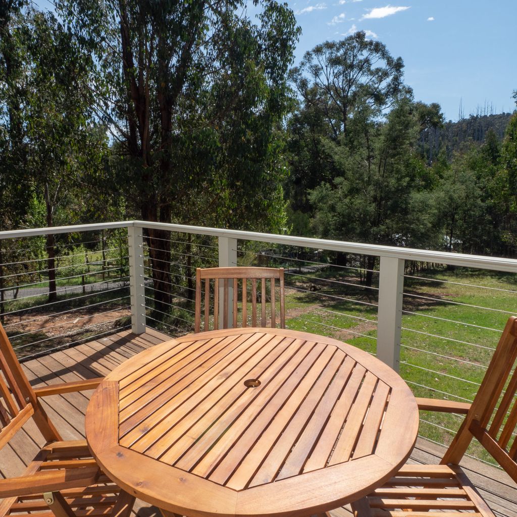 Kookaburra Cottage is a charming two-story retreat perfect for a family escape. Enjoy a cosy living, kitchen, and dining area with reverse-cycle heating/cooling, plus a balcony overlooking the peaceful bushland. Set at the top of Falls Road, itβs a short walk into town and a quick drive to the magical Stevenson Falls.