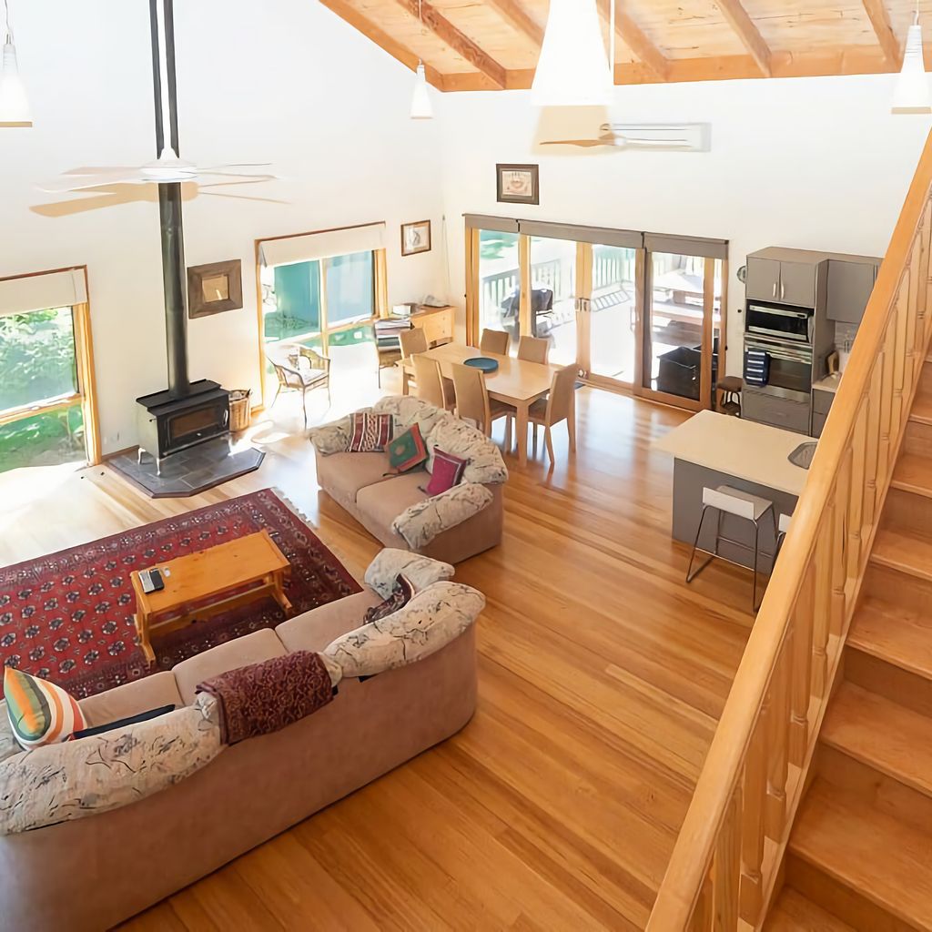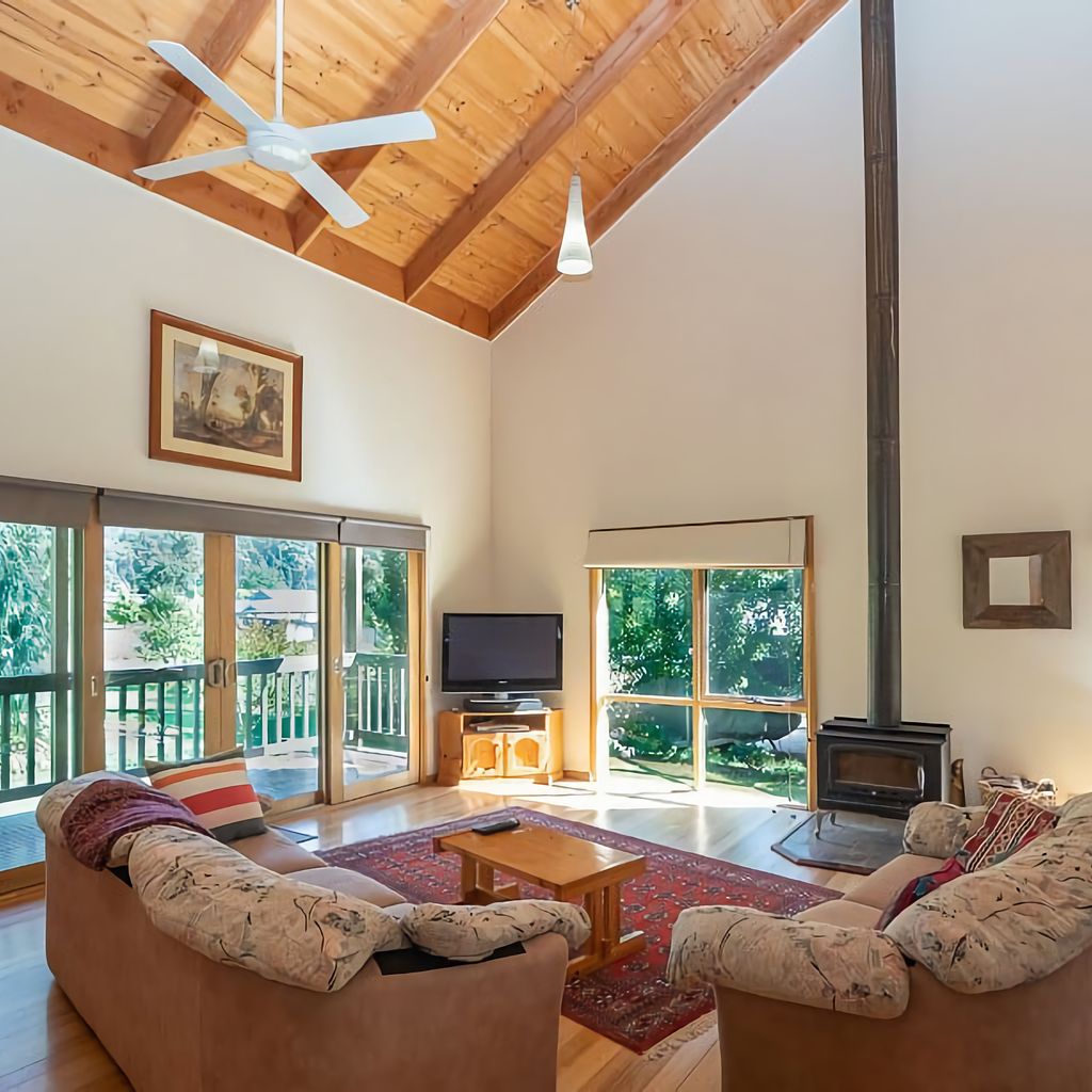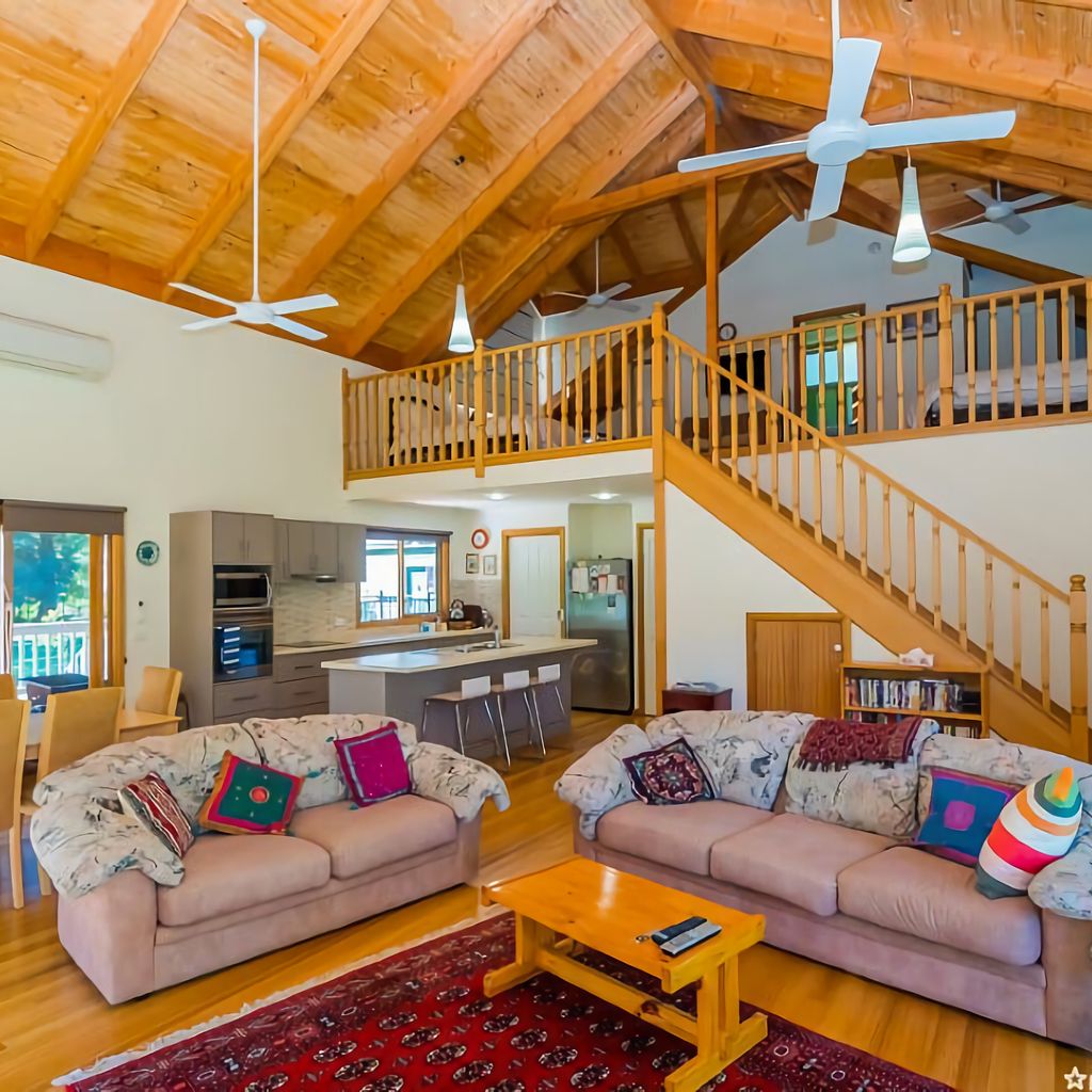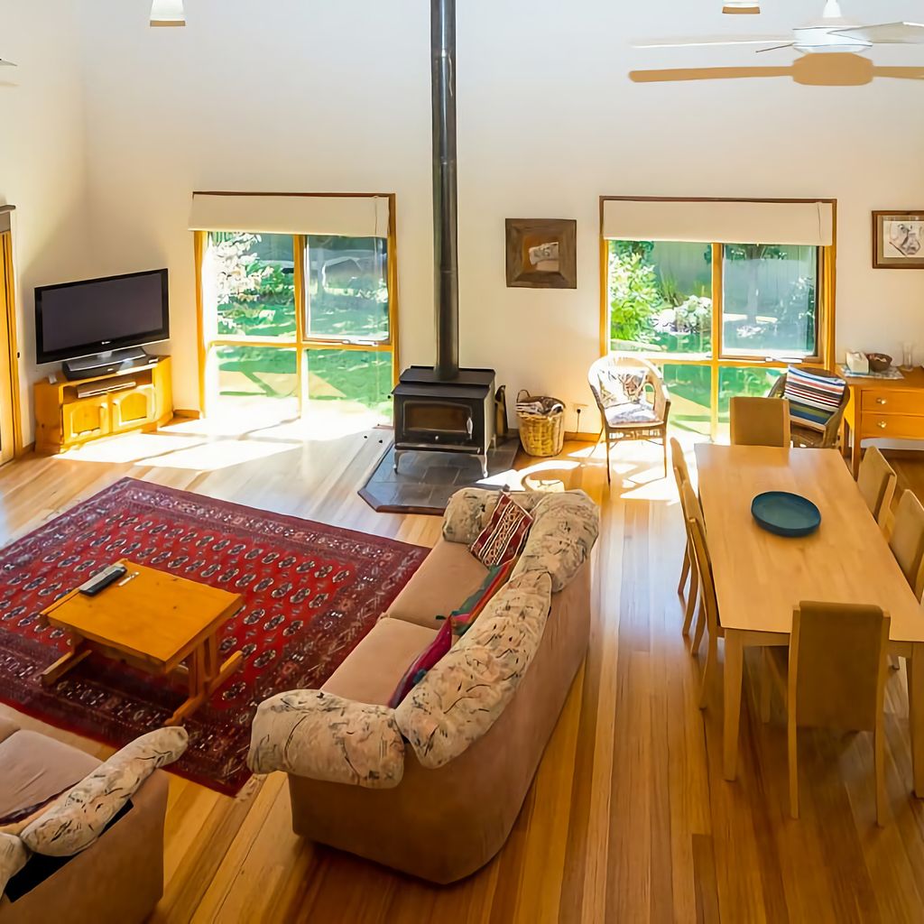 Escape to Mountain Ash Lodge, a bright and charming retreat close to Marysville’s cafés, shops, Lake Mountain, and Stevenson Falls. Enjoy open-plan living with a wood fire, modern kitchen, and mezzanine-style layout filled with natural light.