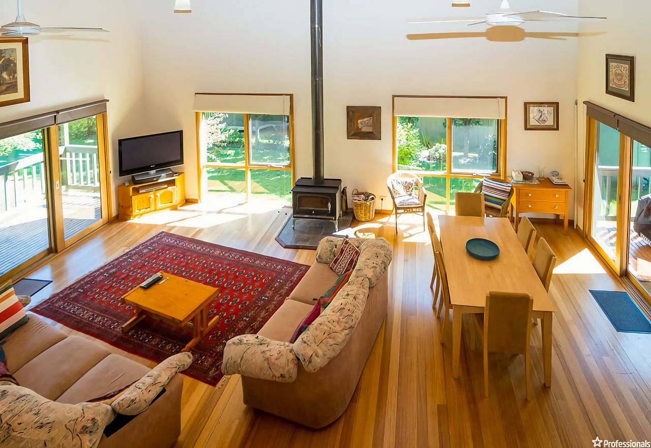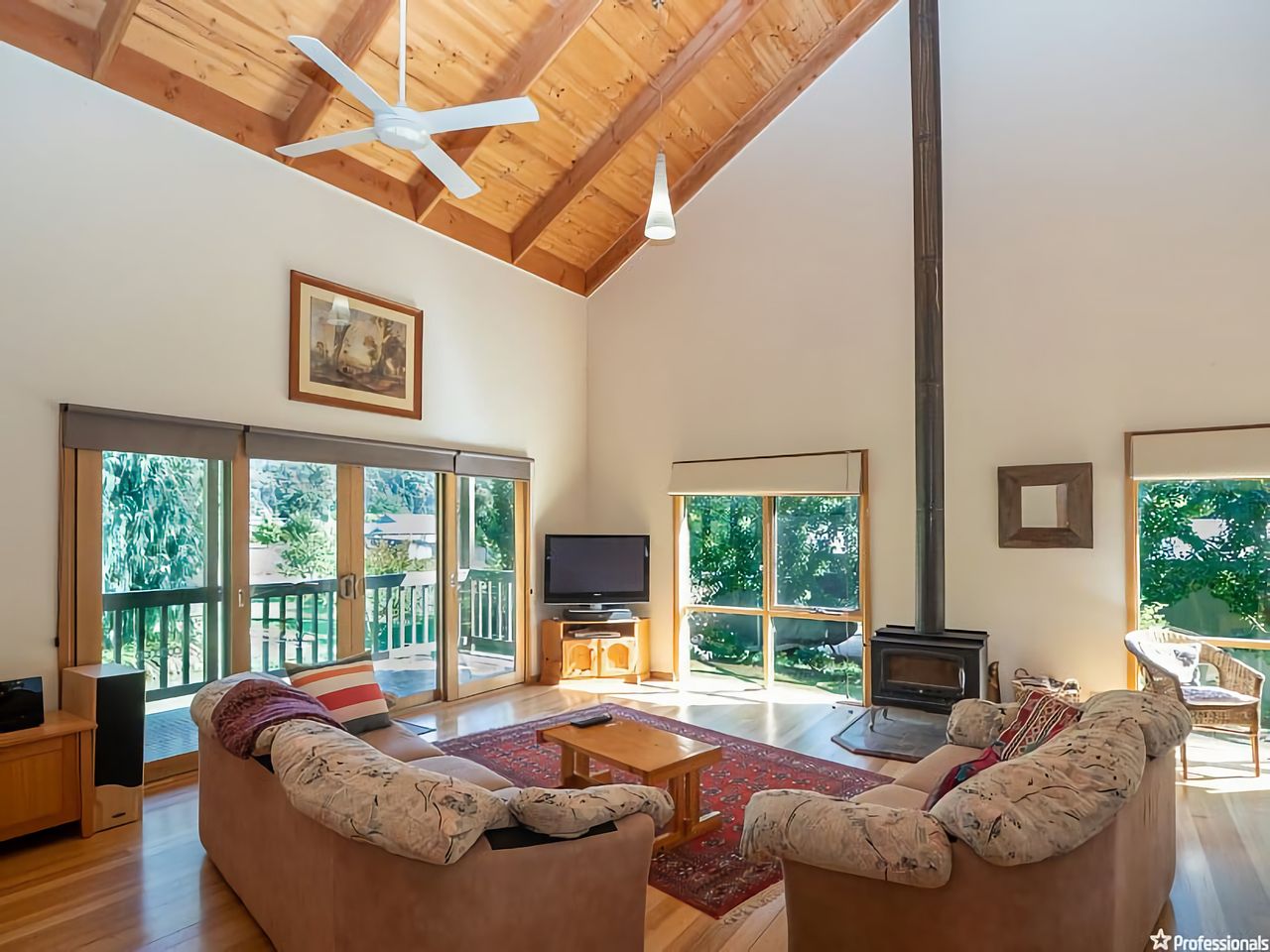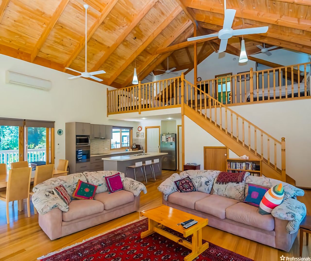Escape to Mountain Ash Lodge, a bright and charming retreat close to Marysville’s cafés, shops, Lake Mountain, and Stevenson Falls. Enjoy open-plan living with a wood fire, modern kitchen, and mezzanine-style layout filled with natural light.