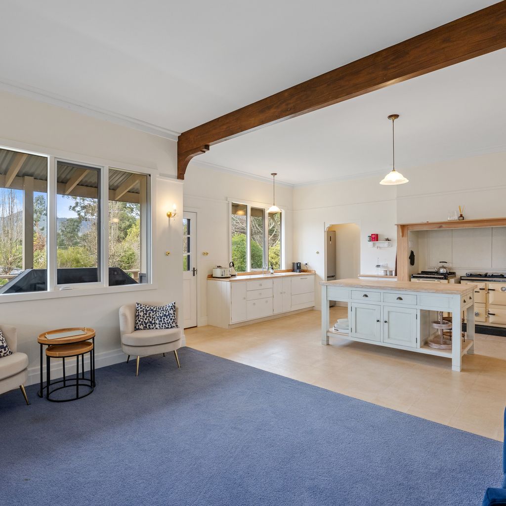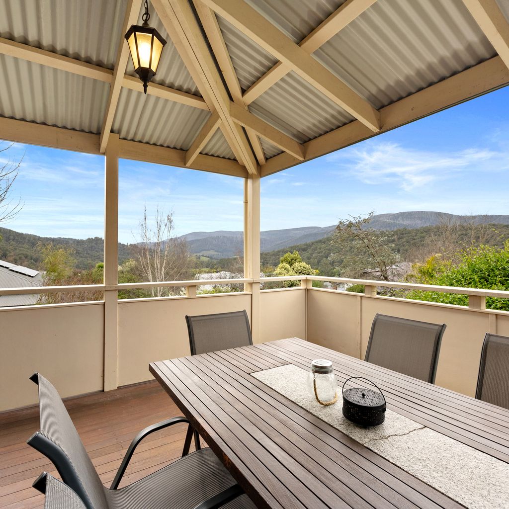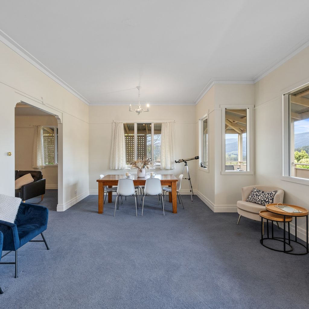 Enjoy a relaxing stay at The Gables, featuring beautifully appointed bedrooms and a charming loft room with stunning views of the Marysville ranges. The spacious open-plan living area includes an island bench, generous dining spaces, and a cosy wood-fire heater—perfect for unwinding on cooler nights. Step onto the expansive veranda to soak in magnificent mountain views or explore the beautifully manicured gardens for a peaceful escape.