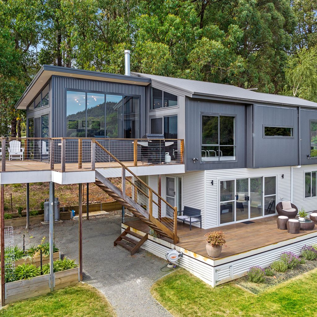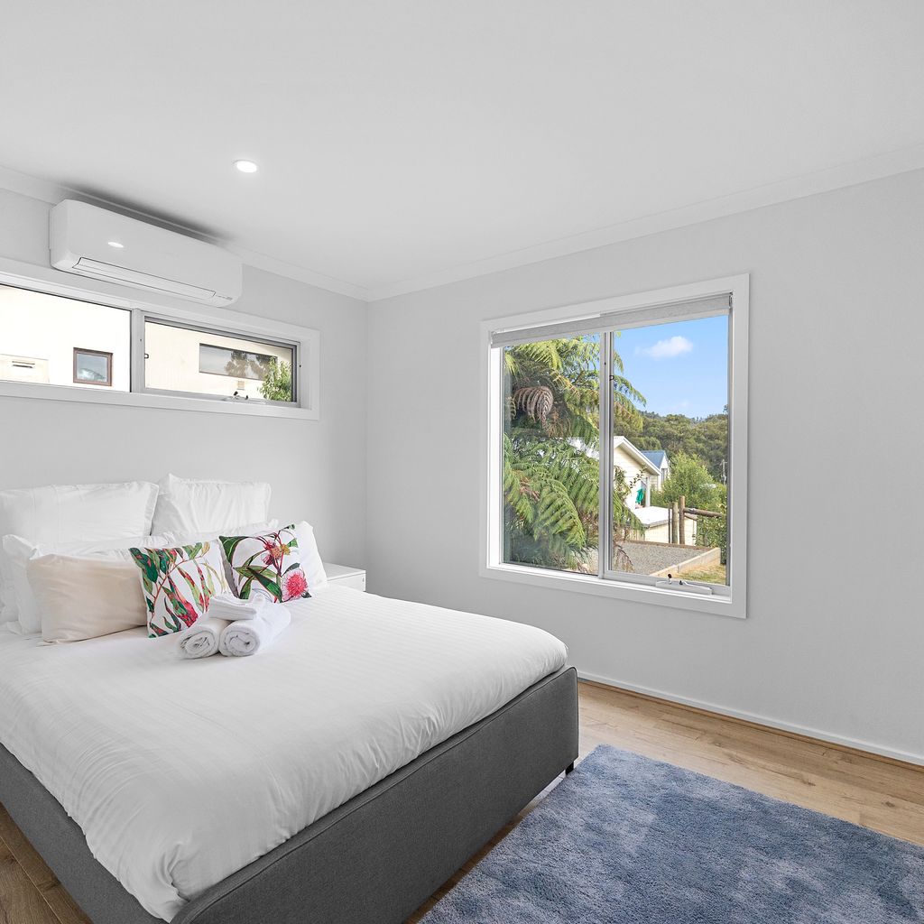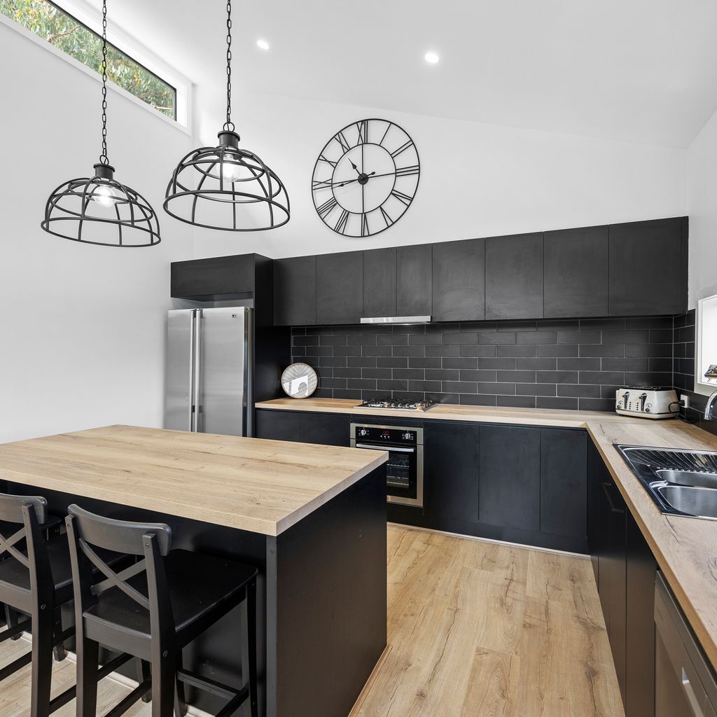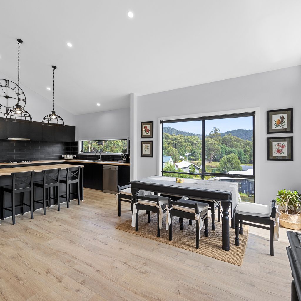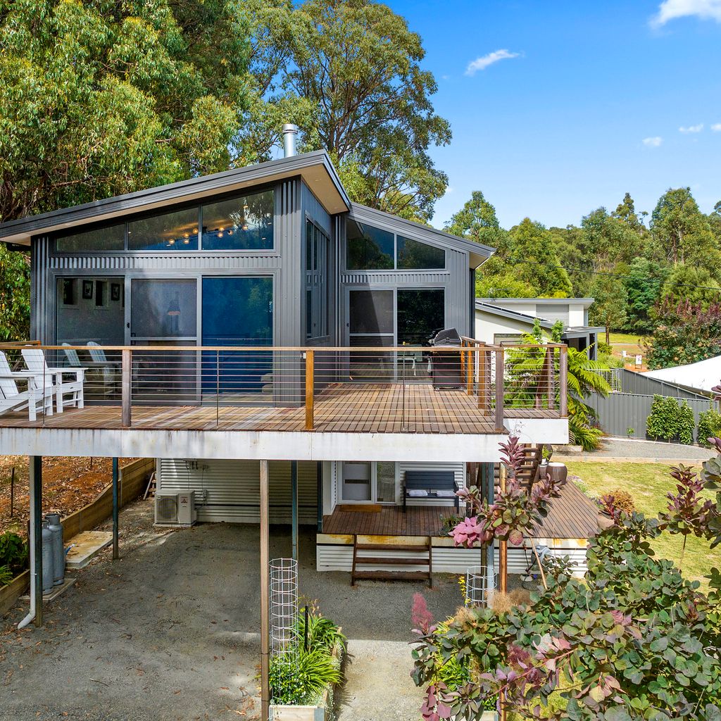 Designed for couples and families, this double-storey home features a bright open-plan living, dining, and kitchen area with high ceilings and double-height windows capturing amazing views. The fully equipped kitchen includes modern appliances and an island bench, while the lounge area offers a cozy woodfire heater and space to relax. Downstairs, enjoy a games room with a pool table and dart board, plus sliding doors leading to a wide veranda with an outdoor fire pit. Located in a quiet part of Marysville, with easy access to Stevenson Falls and the town center.