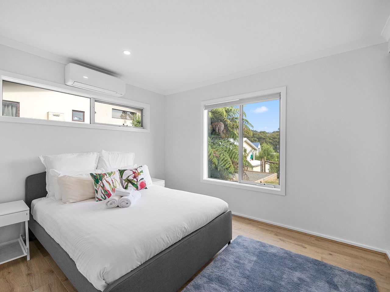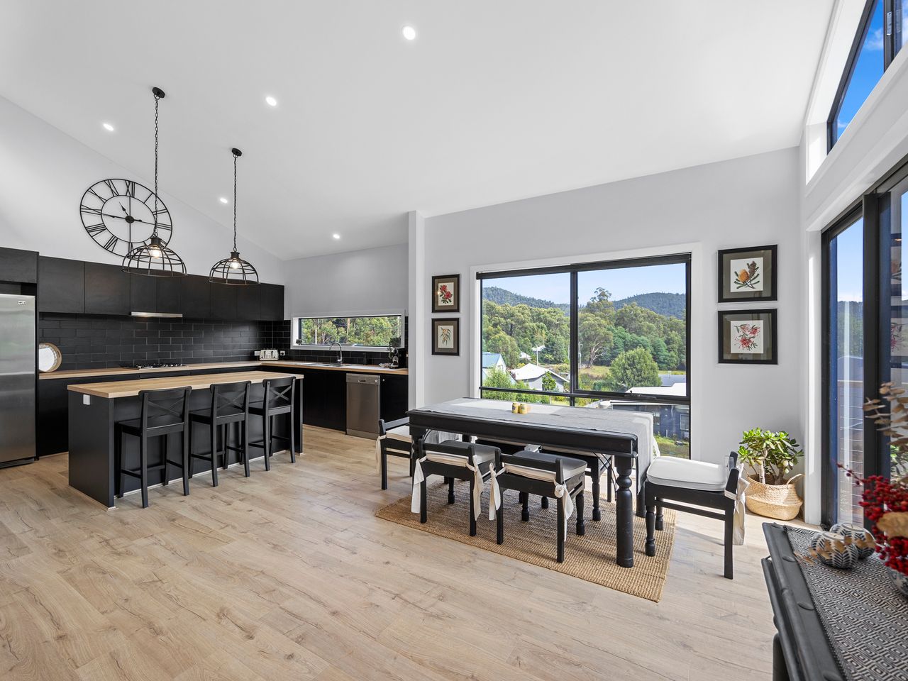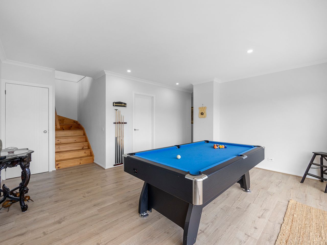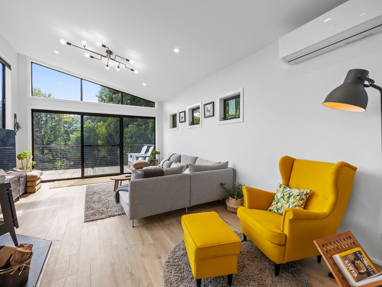 Designed for couples and families, this double-storey home features a bright open-plan living, dining, and kitchen area with high ceilings and double-height windows capturing amazing views. The fully equipped kitchen includes modern appliances and an island bench, while the lounge area offers a cozy woodfire heater and space to relax. Downstairs, enjoy a games room with a pool table and dart board, plus sliding doors leading to a wide veranda with an outdoor fire pit. Located in a quiet part of Marysville, with easy access to Stevenson Falls and the town center.
