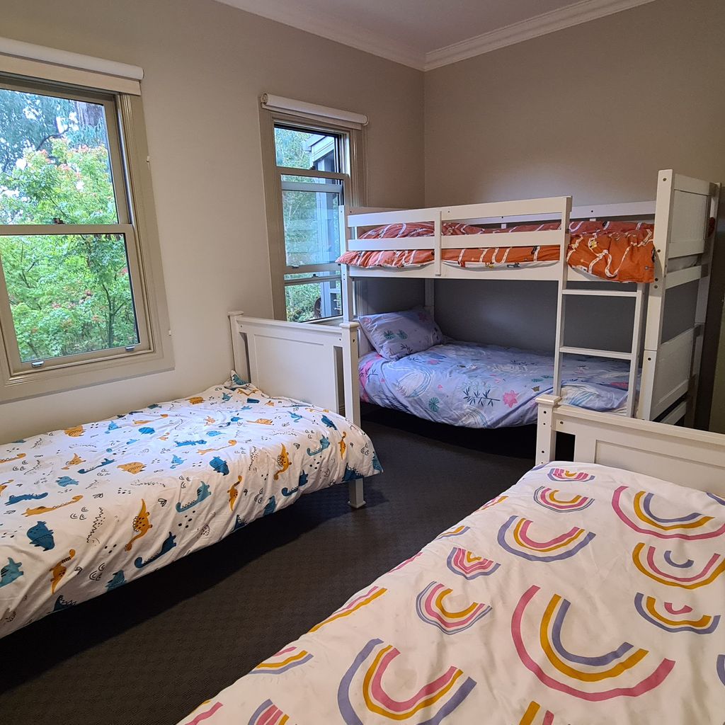Woodbine Lodge is a picture-perfect retreat for families or groups seeking comfort, style, and tranquility. The property has breathtaking views, easy access to walking tracks, and is just a short stroll to the local pub, cafés, and Gallipoli Park.